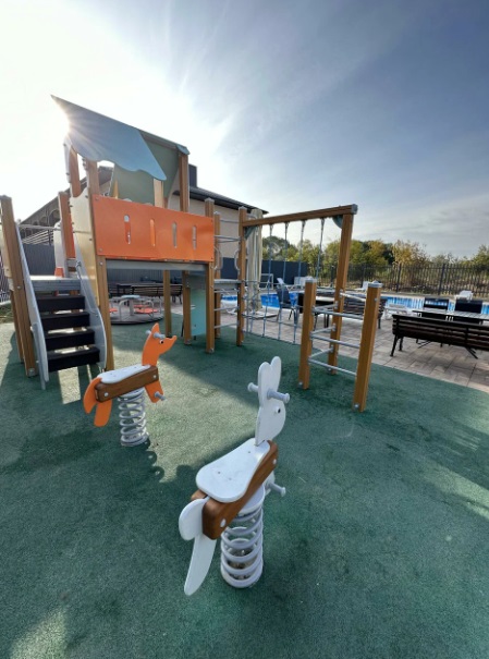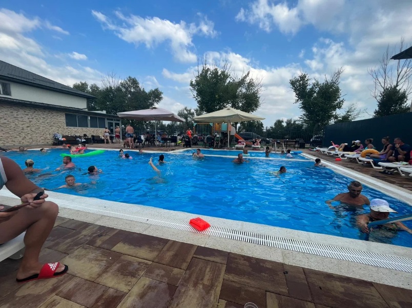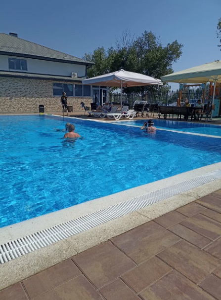 Два подогреваемых открытых бассейна с пресной водой (взрослый и детский). Работают с 30 апреля по 15 октября с 10:00 до 22:00. Аквааэробика и водные развлечения.