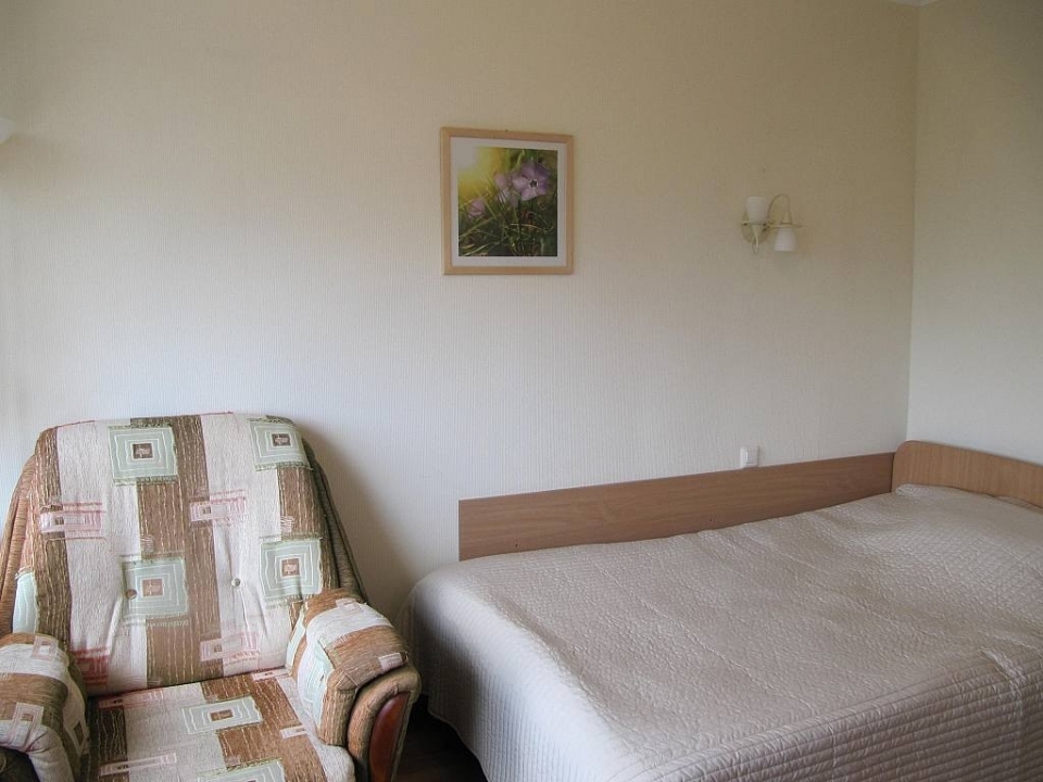 Описание: Аккуратный, удобный, функциональный номер на 2 человек. Номер состоит из гостиной с выделенной спальной зоной, мини-кухни (в некоторых номерах) и ванной комнаты.