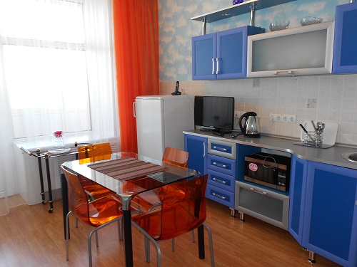 В номере: Гостинная: телефон, телевизор, DVD-проигрыватель, диван-кровать, стенка-горка. Спальная: двуспальная кровать, комод, столик прикроватный, телевизор. Гостинная-столовая: холодильник, телевизор, кухонный гарнитур, микроволновая печь, электрический чайник.