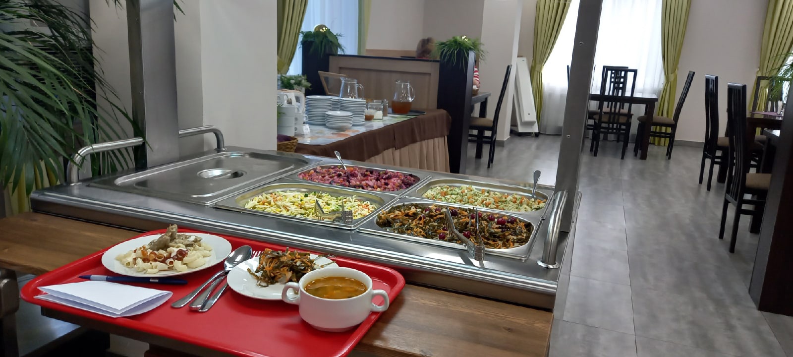 Это рациональное, лечебно-профилактическое питание представлено в форме трех приемов пищи в течение дня. Также доступны сезонные предложения в виде "Тарелки здорового питания", что обеспечивает смену вкусов в соответствии с сезоном. Кроме того, подготавливаются ланч-боксы для туристических групп, что обеспечивает удобство питания во время экскурсий и поездок.