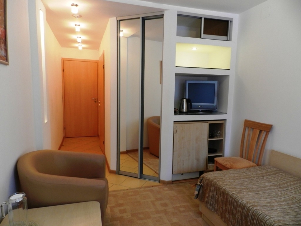 В номере: 1 комната, балкон, холодильник, телевизор, журнальный столик, DVD плеер, телефон, утюг, чайник, столовые приборы, чайная посуда, туалетный столик