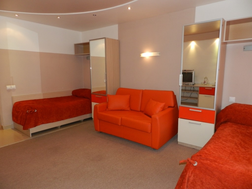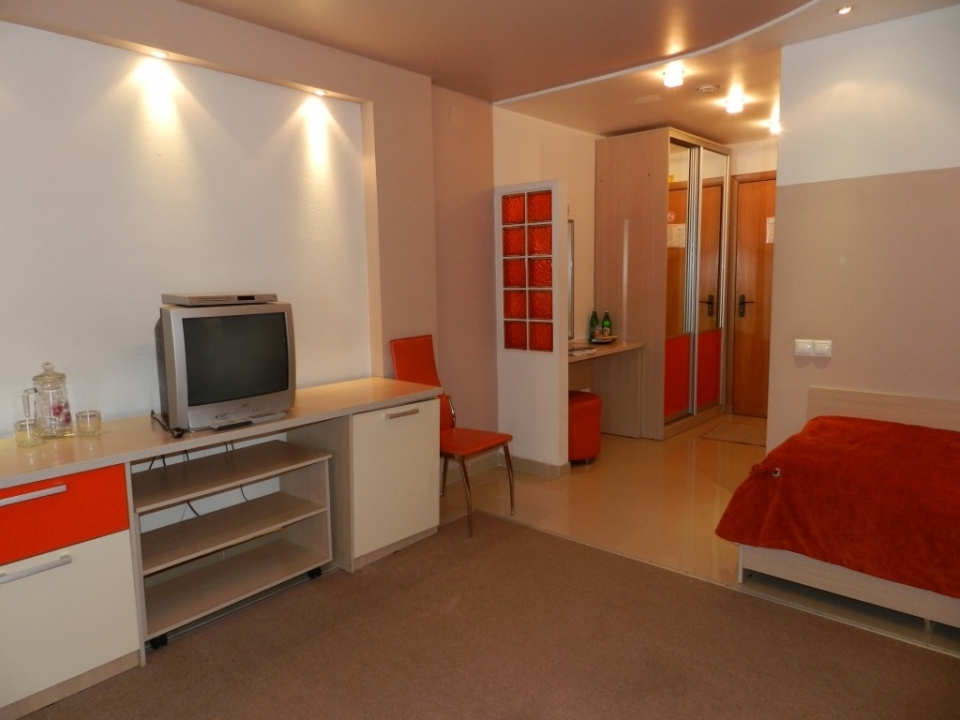 В номерах: 1 комната, холодильник, телевизор, односпальная кровать, телефон, утюг, чайник, столовые приборы, чайная посуда