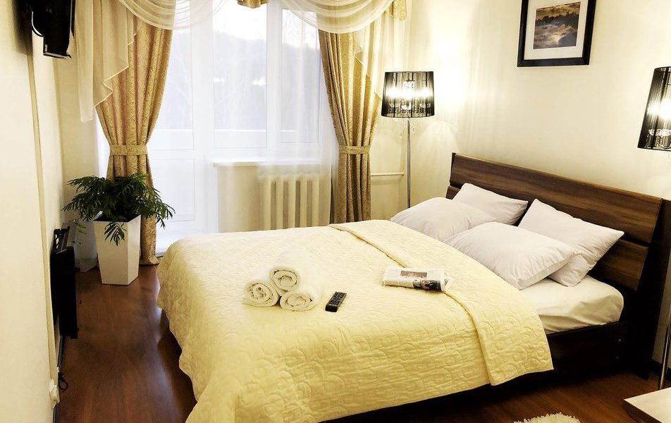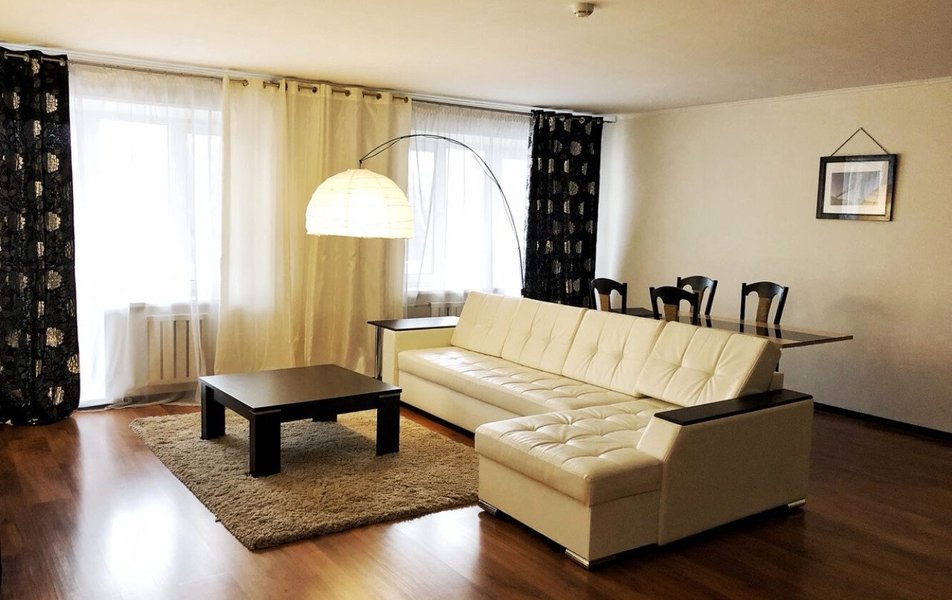 В номере: кухня, диван раскладной, кровать двуспальная, прикроватные тумбочки, стол, столик журнальный, стулья, шкаф, гладильная доска, кондиционер, микроволновая печь, набор посуды, плита электрическая, посудомоечная машина, телевизор, телефон, утюг, холодильник, электрочайник