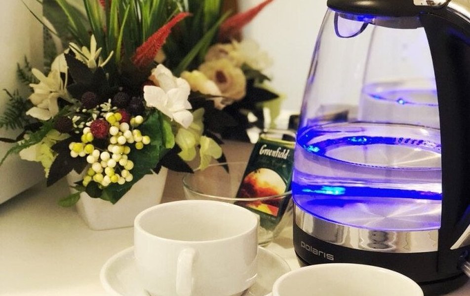 В номере: кровати односпальные /одна двуспальная кровать, прикроватные тумбочки, стол, стул, шкаф, телевизор, телефон, чайный набор посуды, электрочайник
