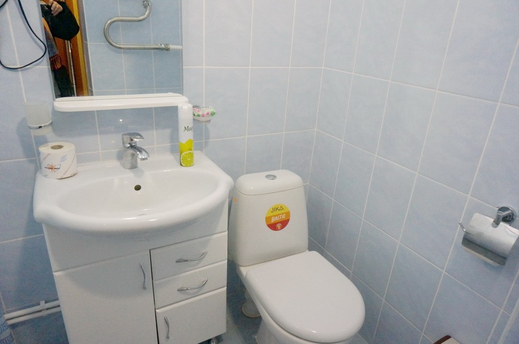 Санузел: душ, раковина, унитаз, фен