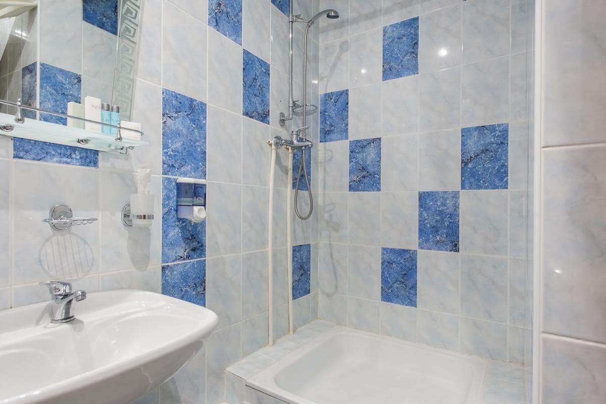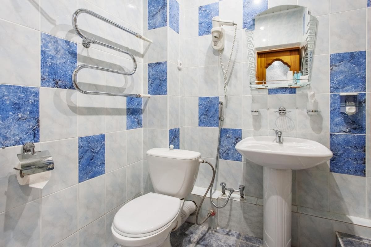 Санузел: унитаз, раковина, душ, фен