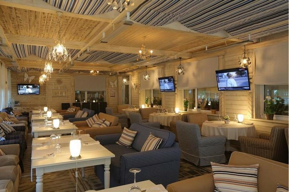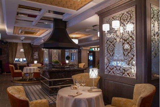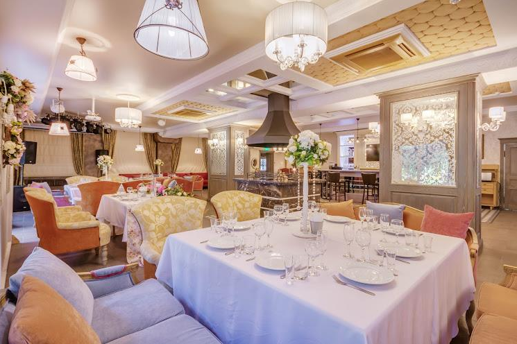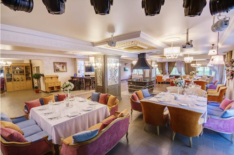 В отеле имеется роскошный ресторан "MYA" в викторианском стиле, c настоящим камином в центре зала, с просторной вернадой в стиле "Прованс". Ресторан принимает заказы на проведение свадеб и других торжеств. Банкеты можно провести также и в шатре, расположенном на территории отеля на поляне у рощи. Ресторан вмещает до 100 человек, веранда до 50 человек, шатёр до 160 человек.