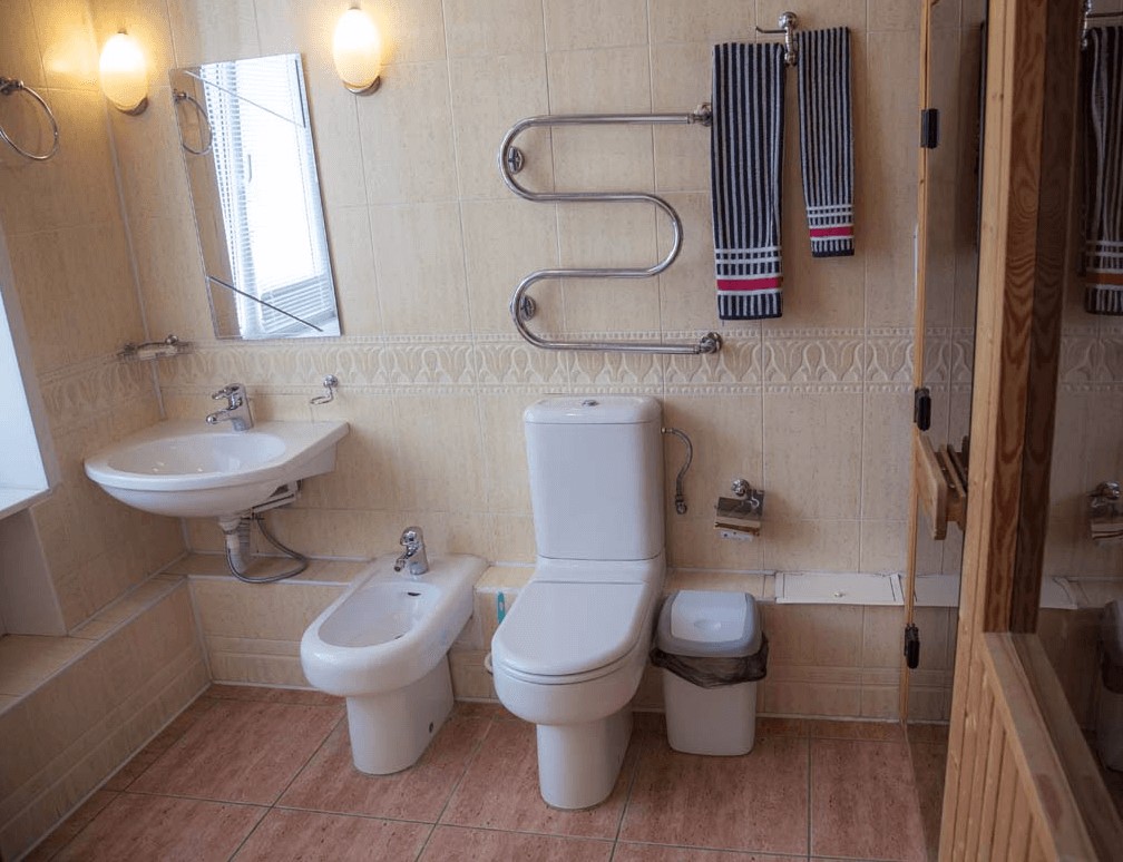 Санузел: душевая кабина, раковина, унитаз, биде, сауна