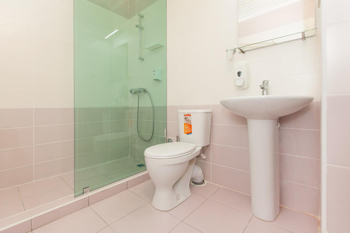 В каждом номере – душ, санузел, кондиционер, небольшой холодильник, телевизор, фен, шкаф для одежды, тумбочки; утюг выдаётся по запросу.