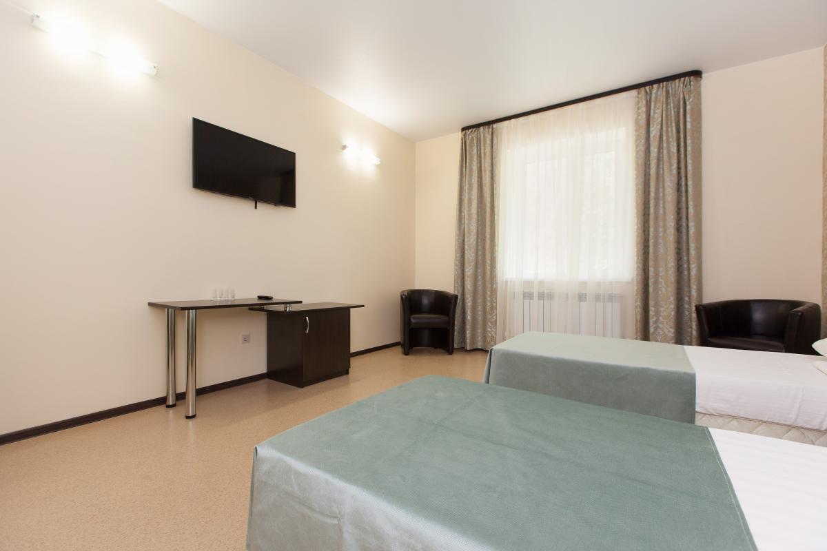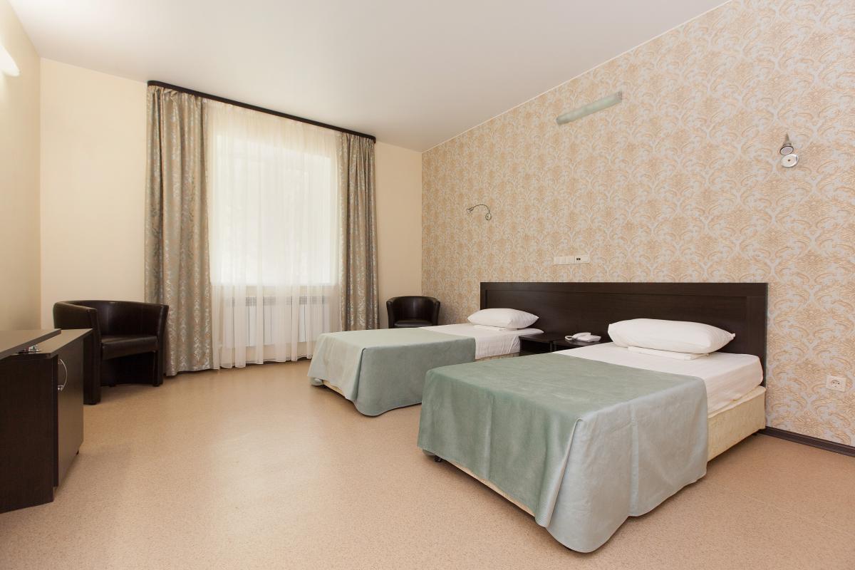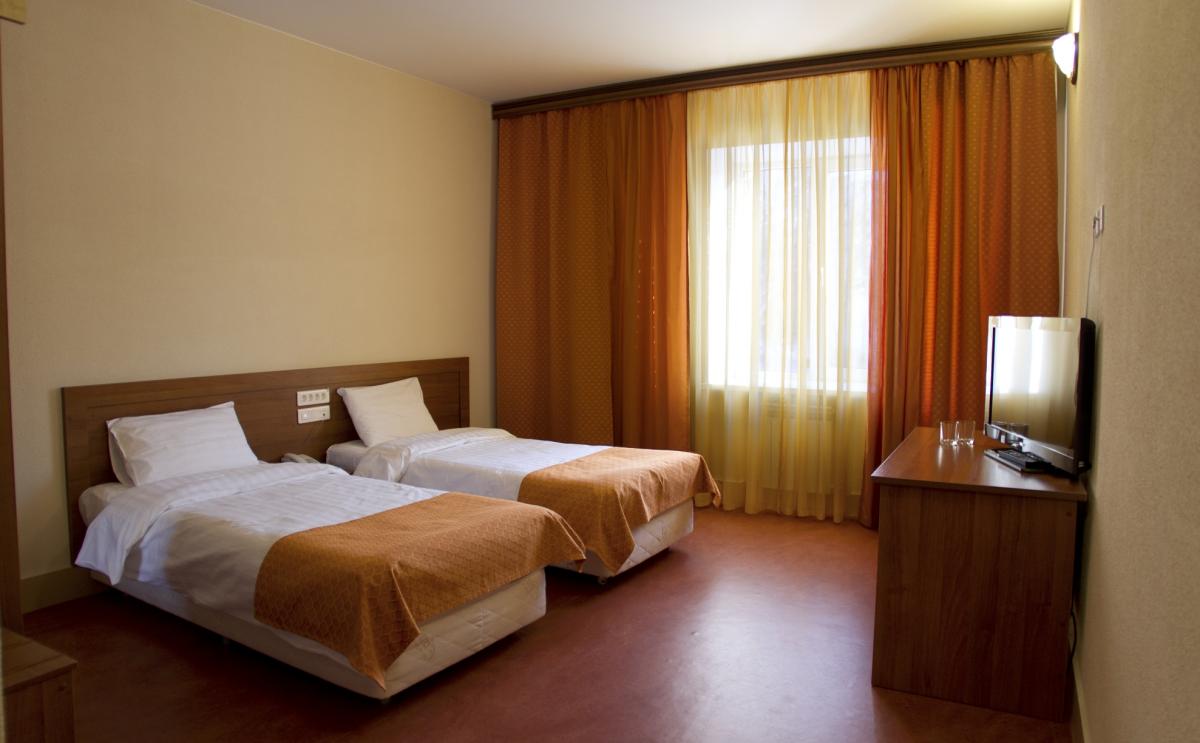 Комфортные уютные номера (15 кв. м), развитая инфраструктура, включающая несколько ресторанов, спортивные корты, площадки и залы, подогреваемый бассейн, прокат спортинвентаря позволят превратить лечение в отдых. Благодаря точкам доступа к бесплатному беспроводному Интернету Wi-Fi Вы можете оставаться на связи с теми, кто Вам дорог.