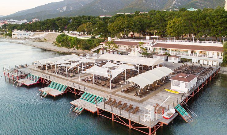 Уютный семейный курорт с ультра все включено находится в живописном центре города Геленджик. Общая площадь территории составляет 43 000 квадратных метров, на которой есть все удобства для семейного отдыха: собственный детский аквапарк, спортивные и игровые площадки, веревочный парк, комплекс бассейнов и Банный комплекс с саунами, а также Центр красоты и здоровья Essentie.