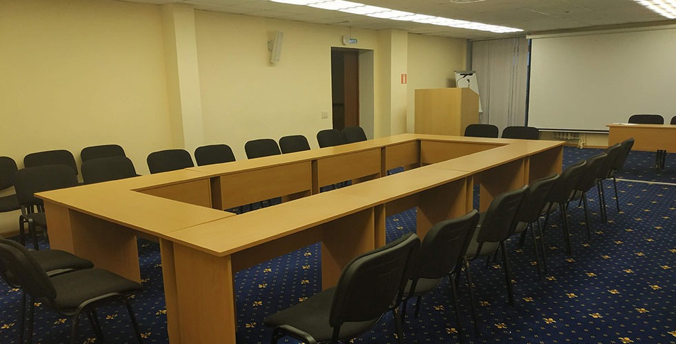 Конференц-зал подойдет для проведения различных мероприятий, семинаров и тренингов. Общая площадь зала – 80 м2. Вместимость – 80 человек.