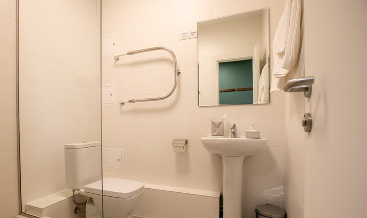 Санузел: с душевой кабиной, тапочки, туалетные принадлежности