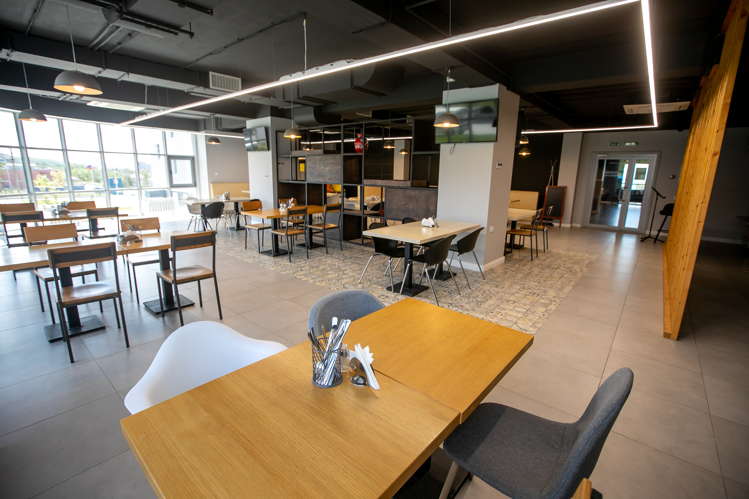 В ресторане также предлагаются десерты, фрукты и широкий выбор коктейлей, напитков и вин.
