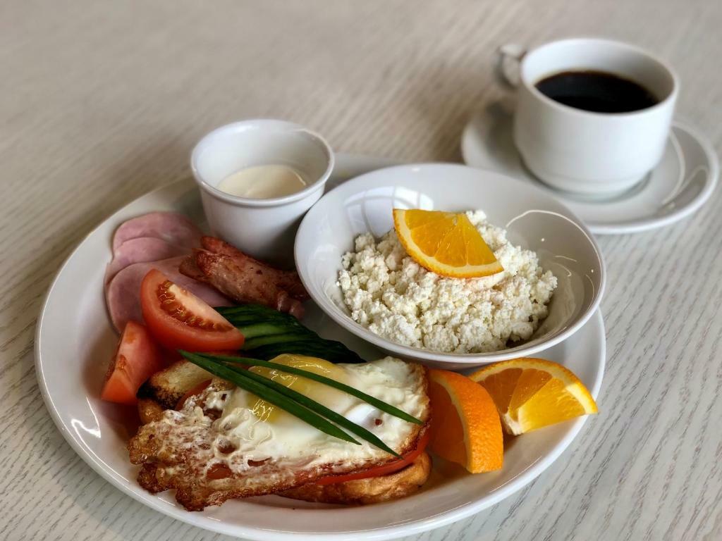 На завтрак вам могут предложить различные виды выпечки, йогурты, мюсли, омлет или яичницу, колбасные изделия, сыры, соленья и джемы, а также горячие напитки и соки.