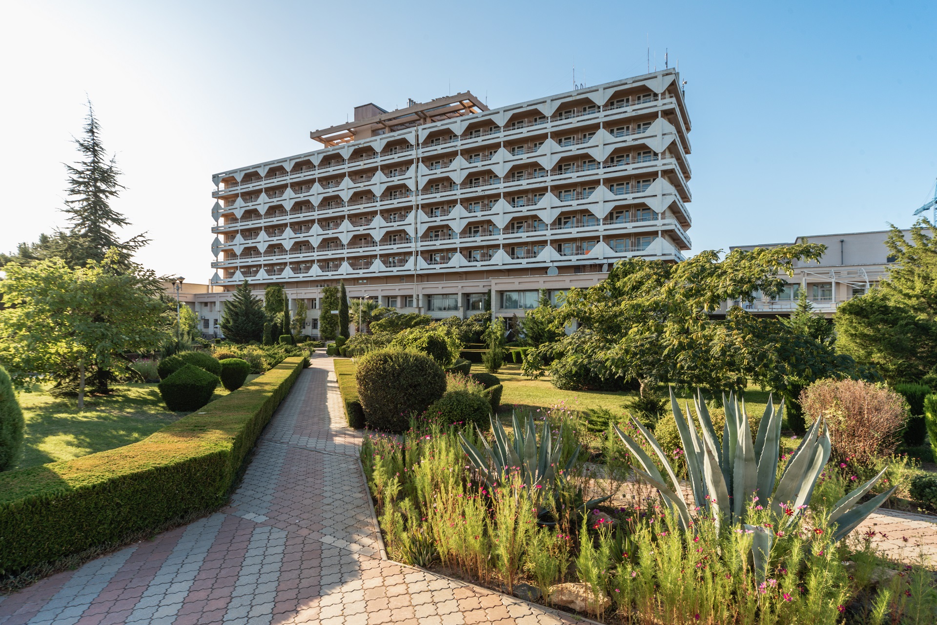 Санаторно-курортный комплекс "Планета" Евпатория - это девятиэтажный современный спальный корпус на 300 мест, оборудован лифтами. Все номера современные, с кондиционерами. Территория пансионата парковая, ухоженная, озеленённая, имеется искусственное озеро с лебедями, ручей.
