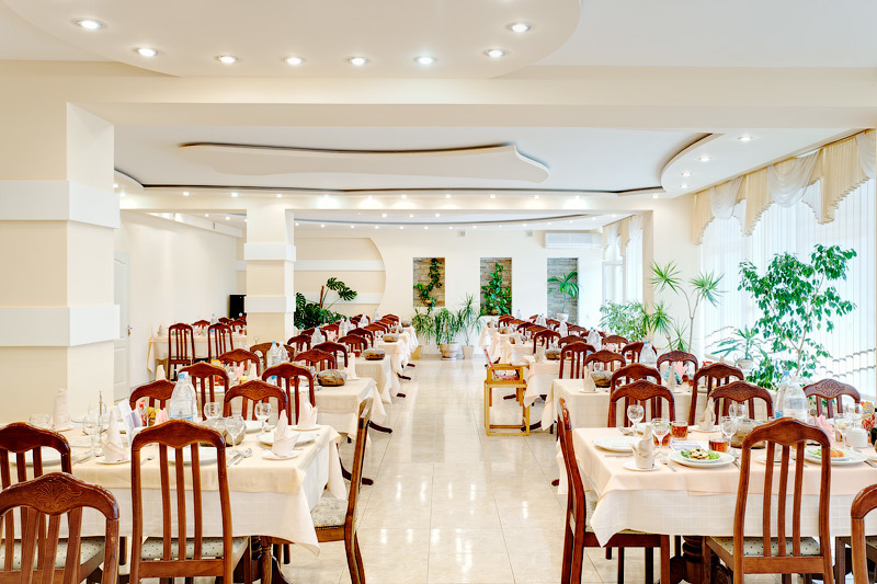 Для отдыхающих, проживающих в номерах "Полулюкс" и "Люкс", в стоимость проживания включено питание ресторанного уровня в банкетном зале. Такое обслуживание предполагает составление индивидуального меню, основанного на пожеланиях отдыхающего и рекомендациях его лечащего врача или диетолога. Всем известно как питание в санатории влияет на состояние здоровья и настроение. Всегда приятно зайти в красиво оформленные, летом охлаждённые, а зимой согретые кондиционерами помещения, увидеть аппетитно сервированные столы. Здесь всегда вас встретят с улыбкой. Накормят быстро и вкусно. В меню всегда новые блюда, для приготовления которых внедрен ряд современных технологий. В банкетном зале чувствуешь себя посетителем ресторана. Здесь к гастрономическим запросам гостей используется индивидуальный подход.