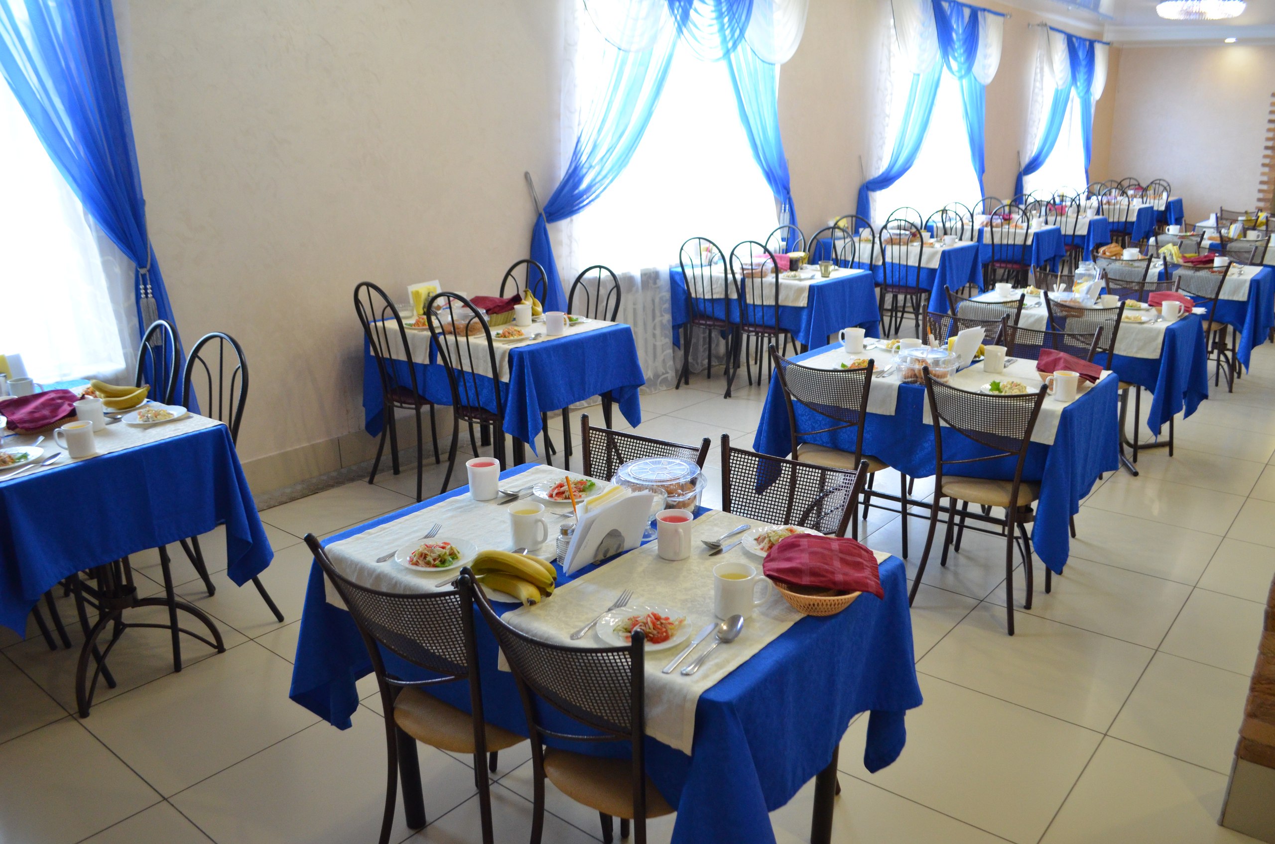 В кафе организовано пятиразовое питание, куда, помимо основных приёмов пищи, входит дополнительный ужин — так называемый «сонник», включающий соки или кефир. Такой режим способствует равномерному распределению нагрузки на пищеварительную систему и поддерживает стабильный уровень энергии в течение дня.