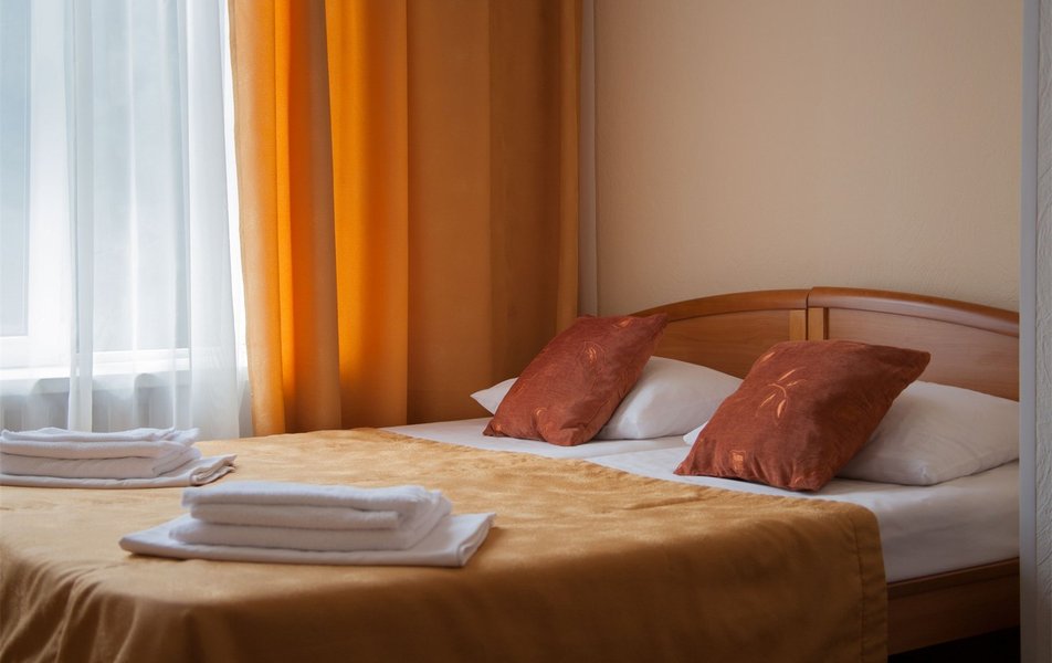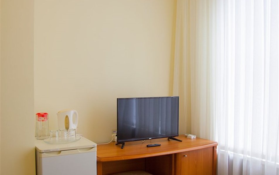 В номере: вешалка, зеркало, кресло, кровати односпальные /одна двуспальная кровать, прикроватные тумбочки, стол, столик журнальный, шкаф, телевизор, телефон, холодильник, чайный набор посуды, электрочайник