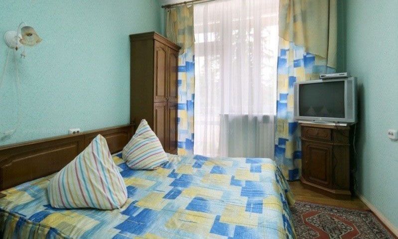 В номере: кровати односпальные, прикроватные тумбочки, стол, стулья, шкаф, набор посуды, телевизор, холодильник
