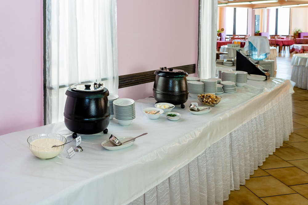 В санатории «Курпаты» организовано трёхразовое питание. Столовая расположена в корпусе «Дружба» на 7 этаже, откуда открывается изумительный вид на море. Для проживающих по коммерческим путевкам в корпусе «Дружба» питание осуществляется по системе «шведский стол». Для проживающих в корпусе П.Тольятти питание обычное, порционное. Для проживающих по социальным путевкам, независимо от корпуса, питание обычное, порционное.