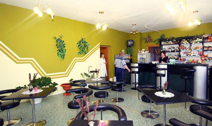 Приемы пищи проходят в уютной столовой с обеденным залом на 120 посадочных мест, где гостям предоставляется 5-и развое сбалансированное разнообразное питание (заказное меню из 2-4 вариантов с элементами шведского стола: свежая выпечка, сухие завтраки, кофе, горячее молоко к завтраку, в обед - салат-бар; диетические столы: диета - Б, Б(д), П.