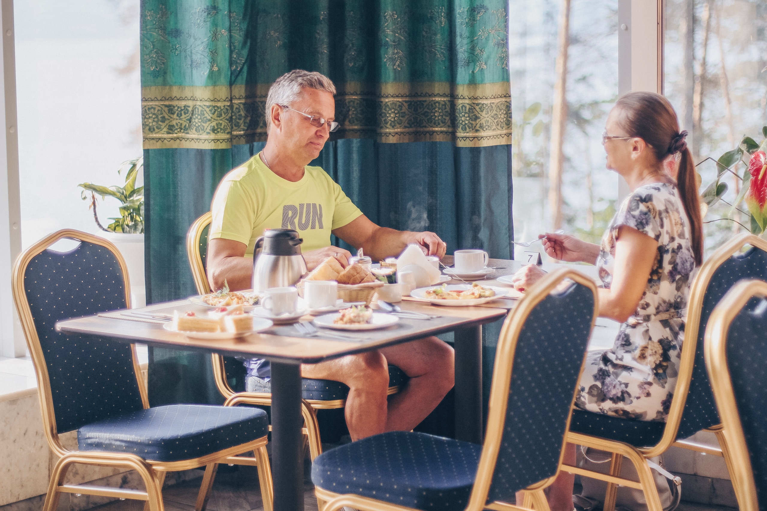 Приемы пищи проходят в обеденном зале санатория "Жемчужина Урала", который находится на втором этаже главного корпуса. Прием гостей ведет администратор столовой, ежедневно по спискам. Отдыхающим, выезжающим на экскурсии, предоставляются сухие пайки. Кроме столовой в санатории (за дополнительную плату) можно посетить уютный ресторан "Корчма" и бар.