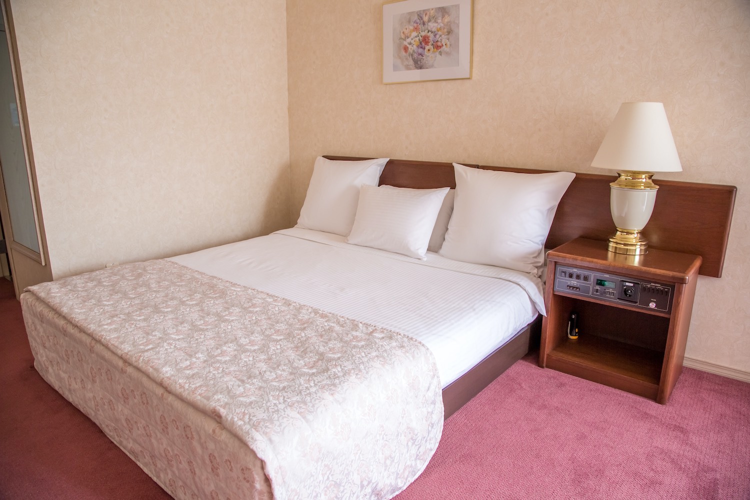 В номере: вешалка, зеркало, кровать двуспальная, прикроватные тумбочки, стол, стулья, шкаф, индивидуальная система обогрева, кондиционер, мини-холодильник, сейф, сплит-система, телевизор, телефон, электрочайник