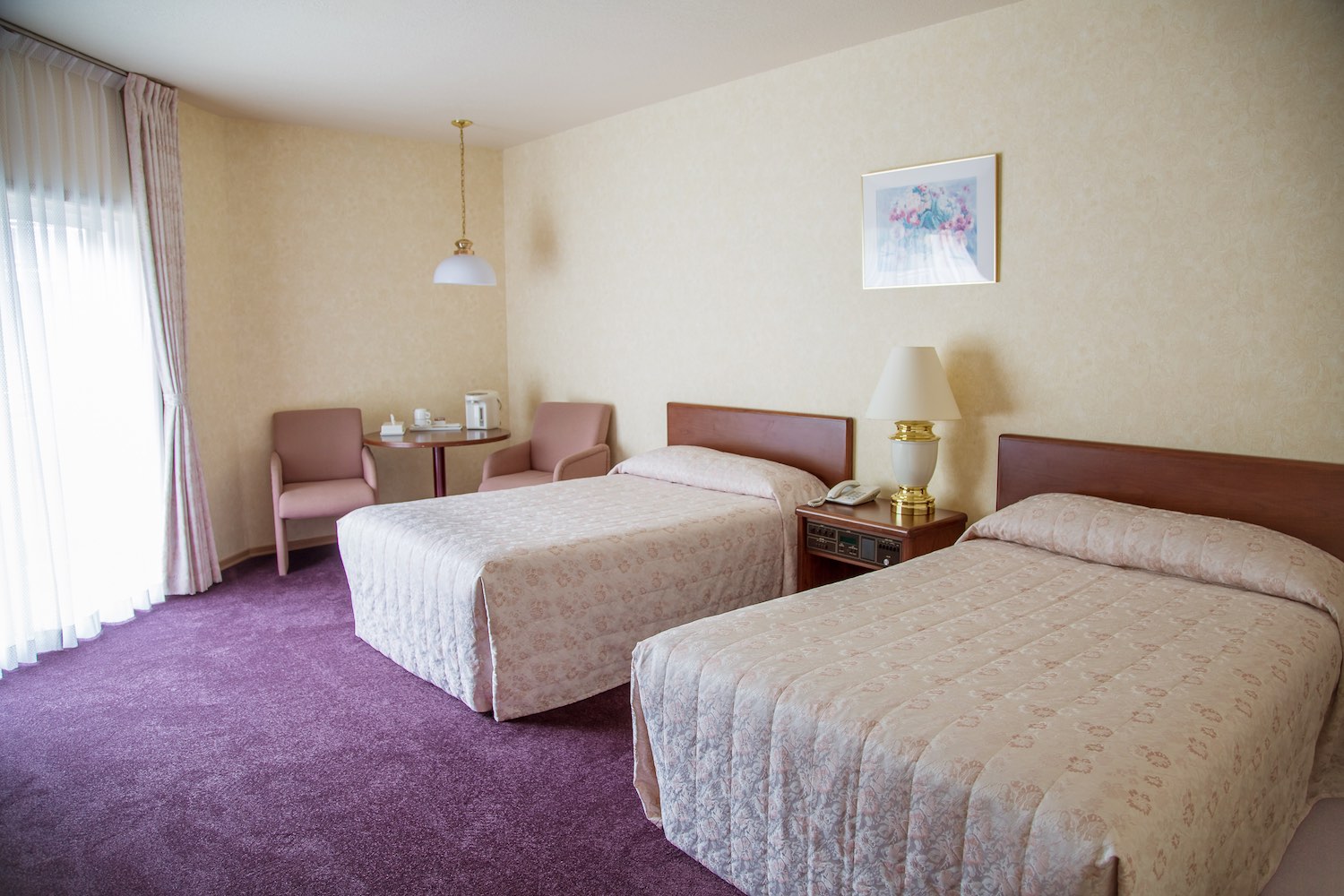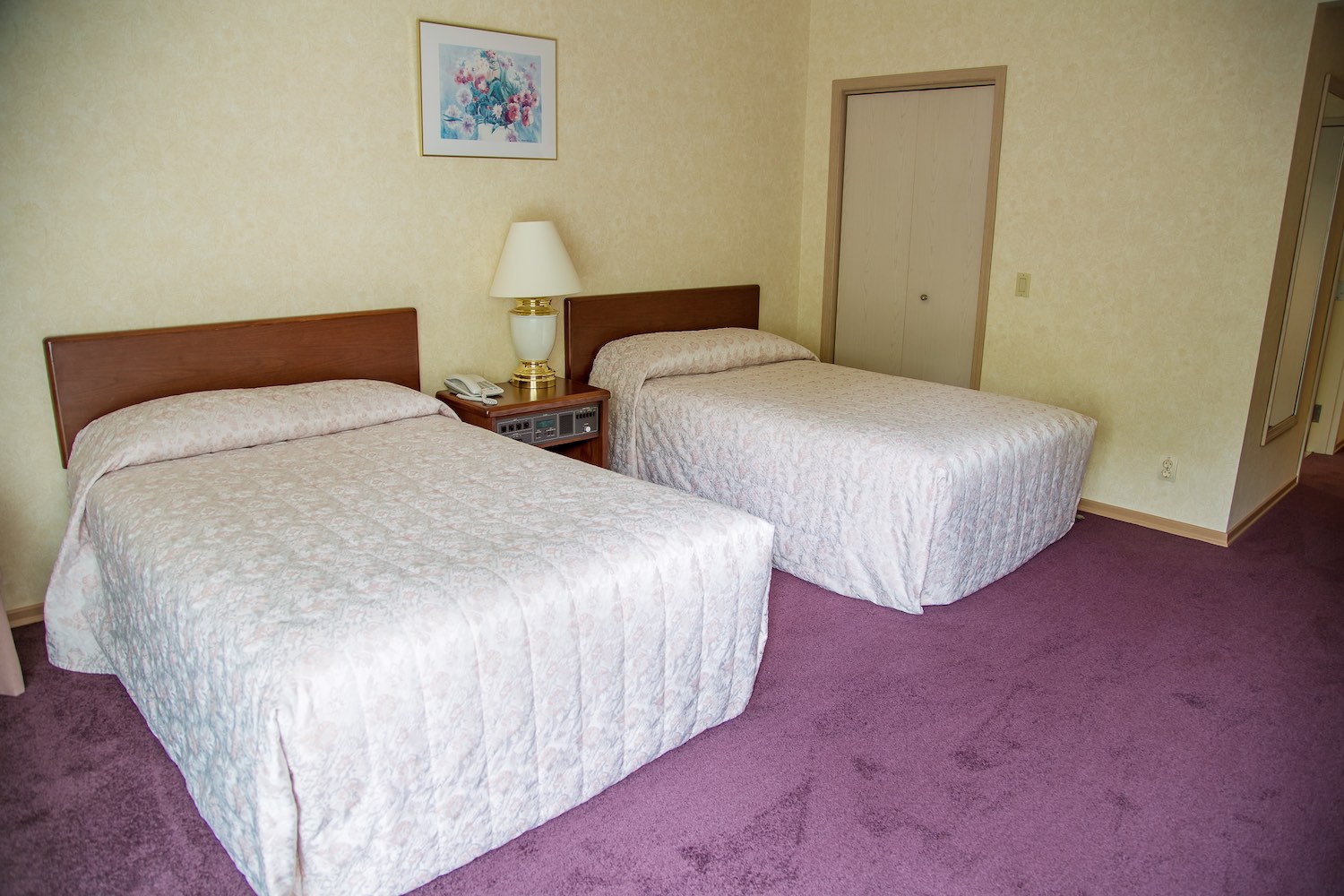 В номере: вешалка, зеркало, кровати полутороспальные, прикроватные тумбочки, стол, стулья, шкаф, индивидуальная система обогрева, кондиционер, мини-холодильник, сейф, сплит-система, телевизор, телефон, электрочайник