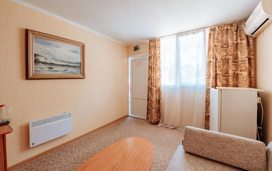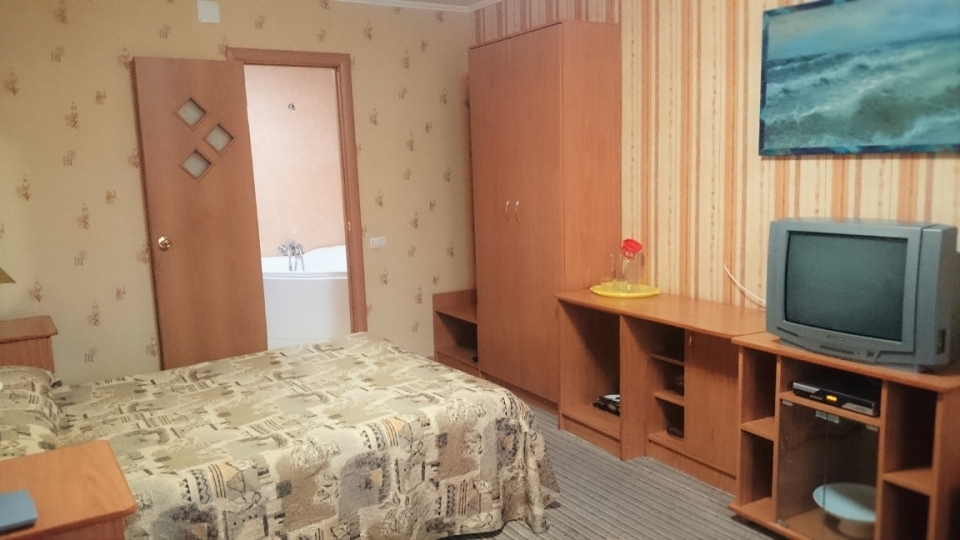 В номере: телевизор, кондиционер, холодильник, телефон, набор посуды, санузел, душ, сейф, кресло-кровать.