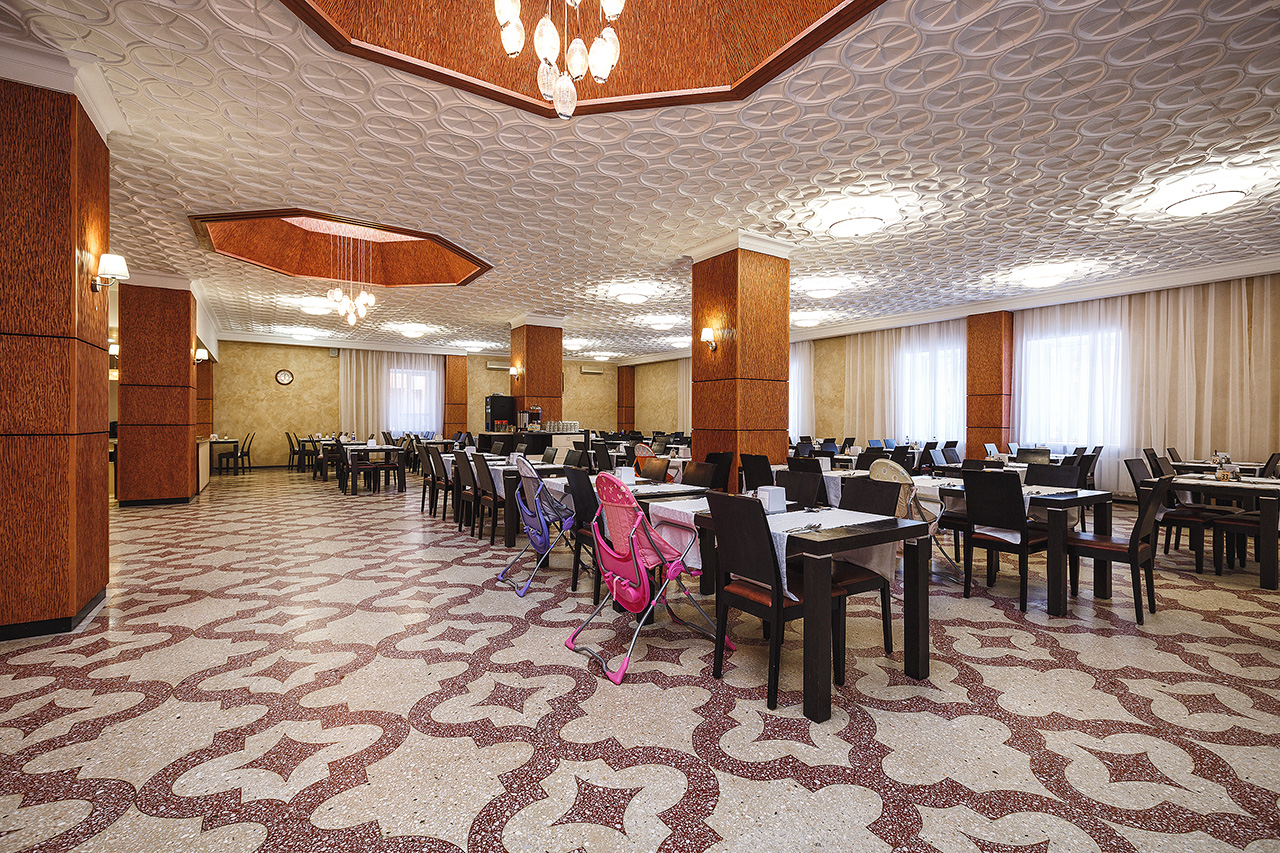 принимает гостей, проживающих в номерах категории "Люкс". Здесь отдыхающим предлагается трехразовое питание по системе "Шведский стол"+ заказное меню. Большое разнообразие блюд, изысканный интерьер и ресторанная подача удивят даже самых взыскательных постояльцев. Процесс питания организован в две смены: 1 смена 2 сменаЗавтрак 07:30 - 08:30 Завтрак 07:30 - 08:30 Обед 12:40 - 13:40 Обед 12:40 - 13:40 Ужин 17:50 - 18:40 Ужин 17:50 - 18:40 |
