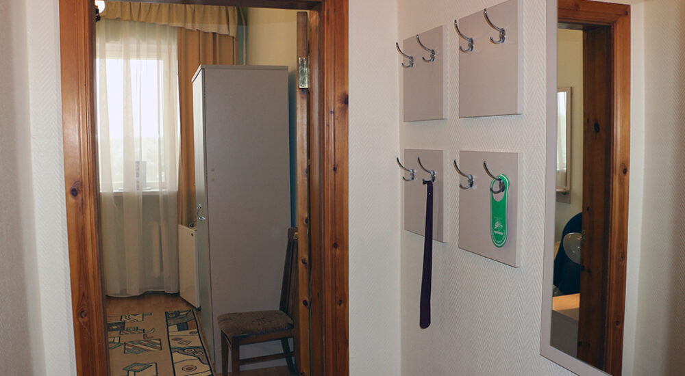 В номере: две односпальные кровати, прикроватные тумбочки, два стула, кресло или диван, шкаф для одежды и личных вещей, зеркало, вешалка для верхней одежды, холодильник, телевизор, телефон, чайник, чайный набор. По просьбе Гостя – сушилка для белья, фен