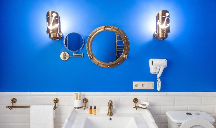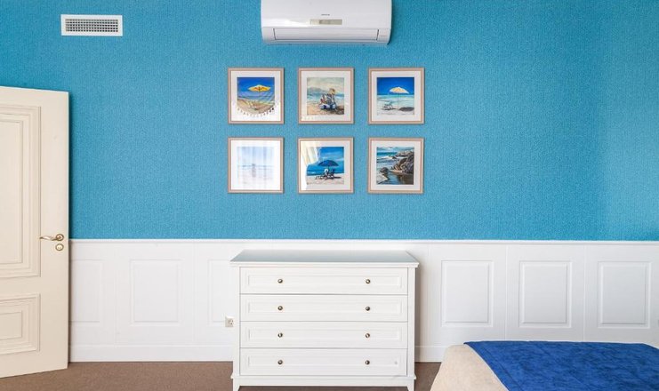 В номере: диван раскладной, зеркало, кресло, кровать двуспальная, прикроватные тумбочки, стол, стулья, тумба багажная, шкаф, кондиционер, мини-холодильник, сейф, телевизор ЖК, телефон, чайный набор посуды, электрочайник
